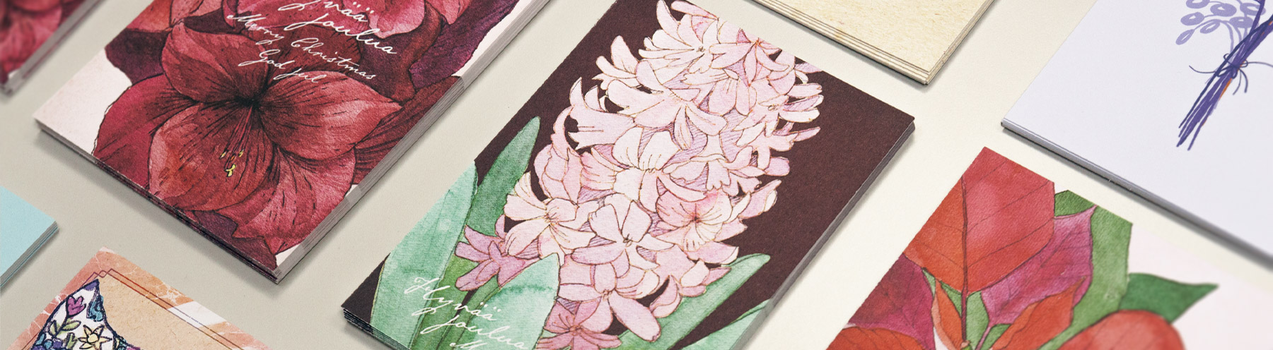 Kortit, tarrat ja lahjapaperi painetaan tällä hetkellä Virossa ja Saksassa, julisteemme painetaan meidän studiolla Joensuussa.